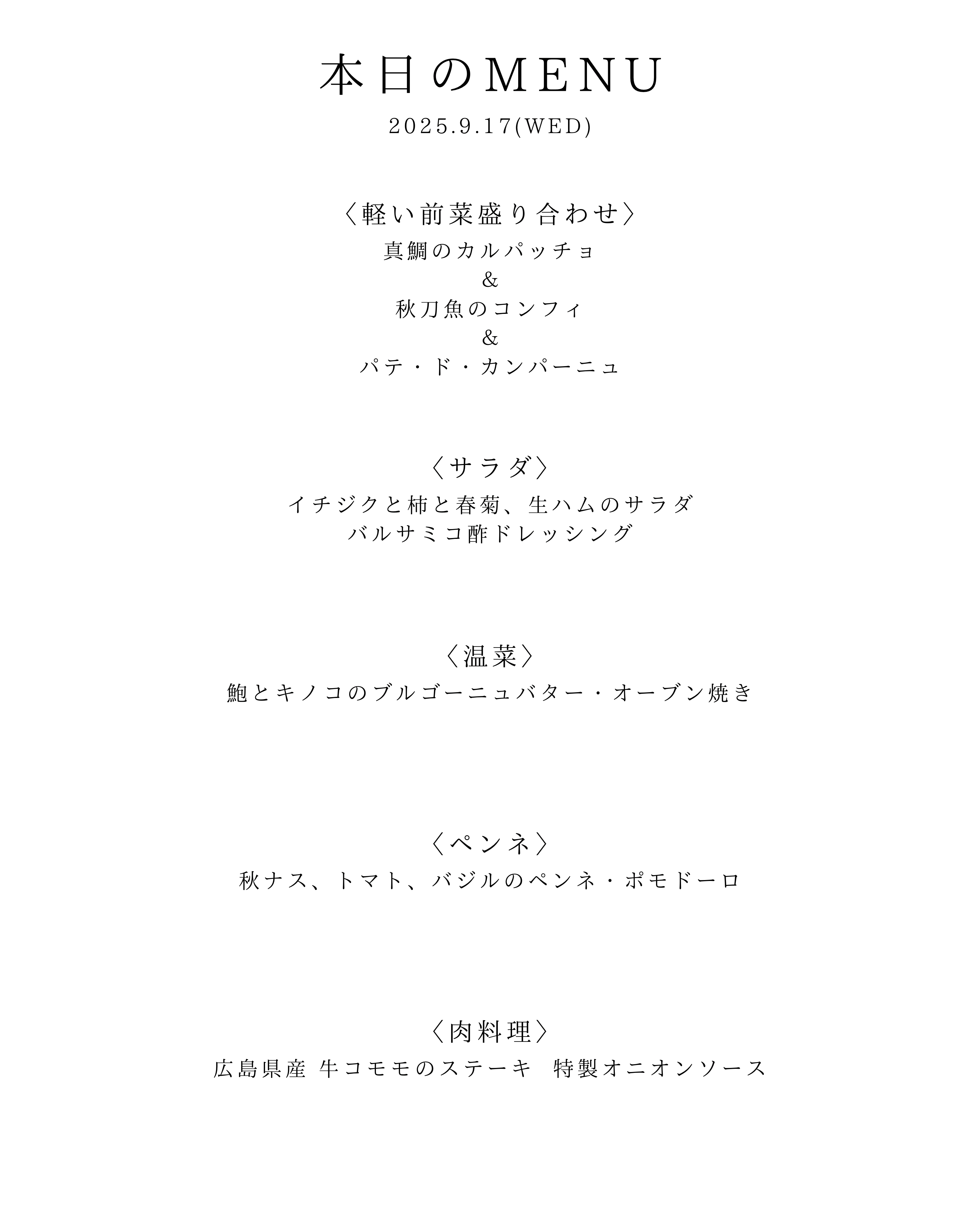 ↓↓コース一例 フード5品5000円、ペアリング5000円